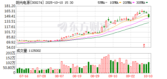 阳光电源10月10日大宗交易平台出现一笔成交,成交量9.88万股,成交金额1447.62万元,大宗交易成交价为146.52元。该笔交易的买卖双方均为机构专用席位。